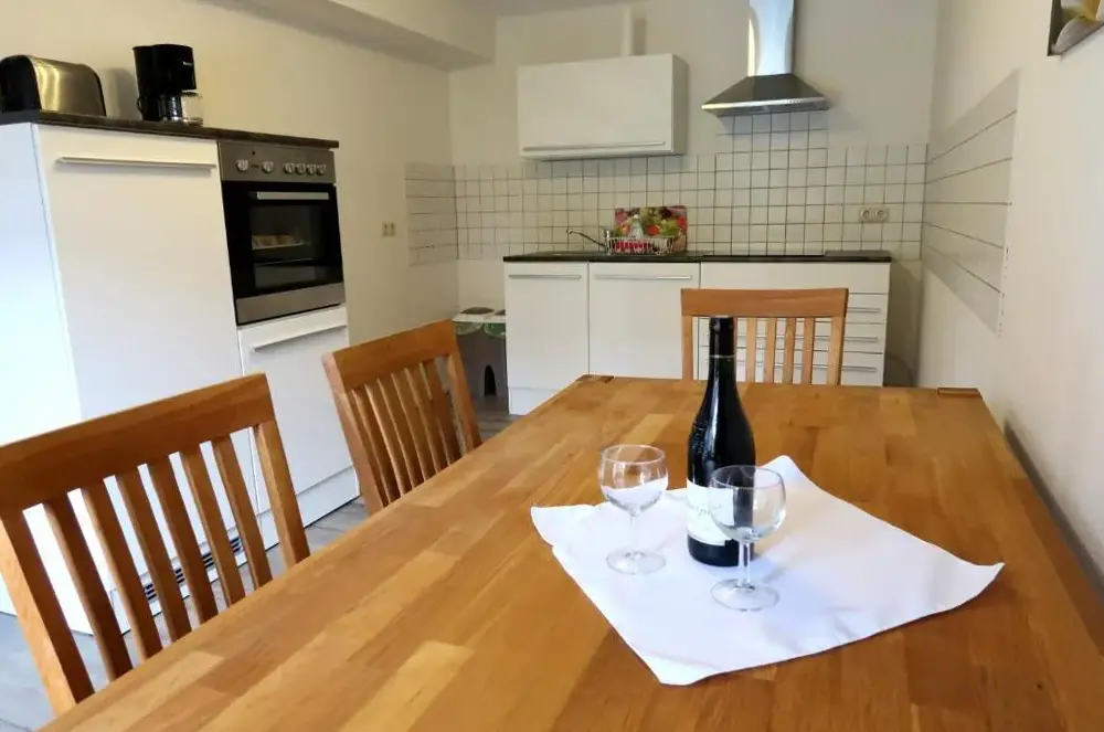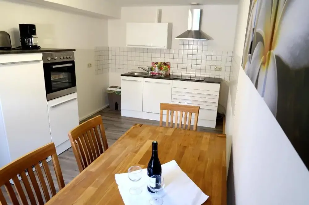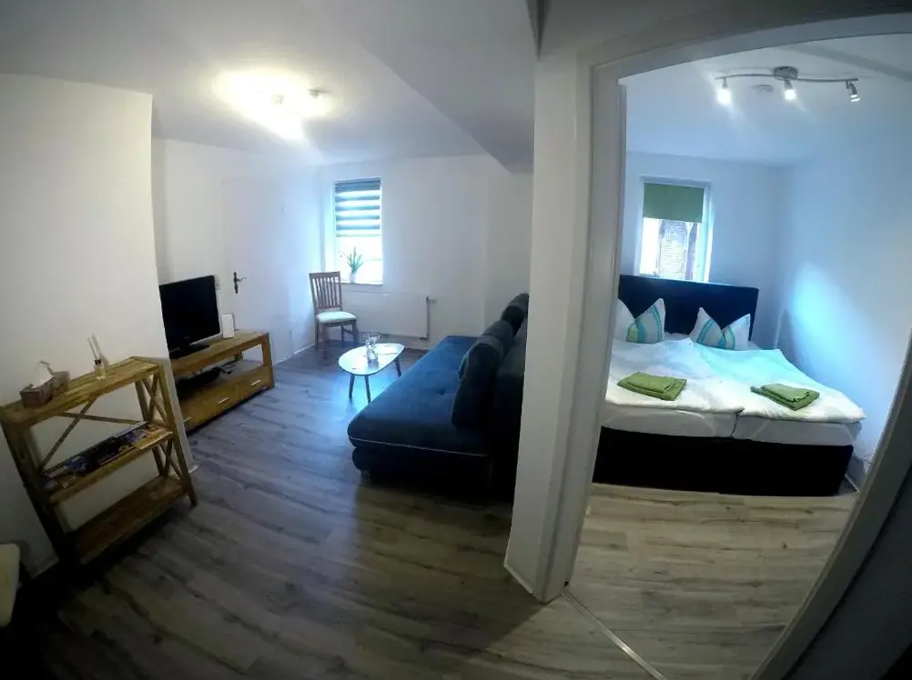 Haus Zum Römer in Arnstadt bietet bequeme Unterkünfte mit moderner Ausstattung. Die Wohnung verfügt über ein eigenes Badezimmer, eine vollständig eingerichtete Küche mit Kaffeemaschine sowie einen Essbereich und einen Balkon mit Blick auf den Garten. Zu den praktischen Annehmlichkeiten gehören eine Waschmaschine, eine Spülmaschine und Parkettböden. Kostenlose private Parkplätze stehen direkt vor Ort bereit. Die Unterkunft befindet sich in zentraler Lage, nah an Sehenswürdigkeiten wie dem Friedenstein-Schloss und der Bauhaus-Universität Weimar. Radfahrer profitieren von der Möglichkeit zu sportlichen Aktivitäten in der Region. Gäste loben die komfortable Einrichtung, die Sauberkeit der Wohnung sowie die günstige Lage.
